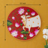 Crafted on a wooden plate, this pichwai portrays an auspicious vision of a white cow, a symbol of good luck and prosperity in Hindu culture, adorned with a magnificent floral headdress. The intricate details and vibrant colors create a visually stunning and meaningful artwork.
